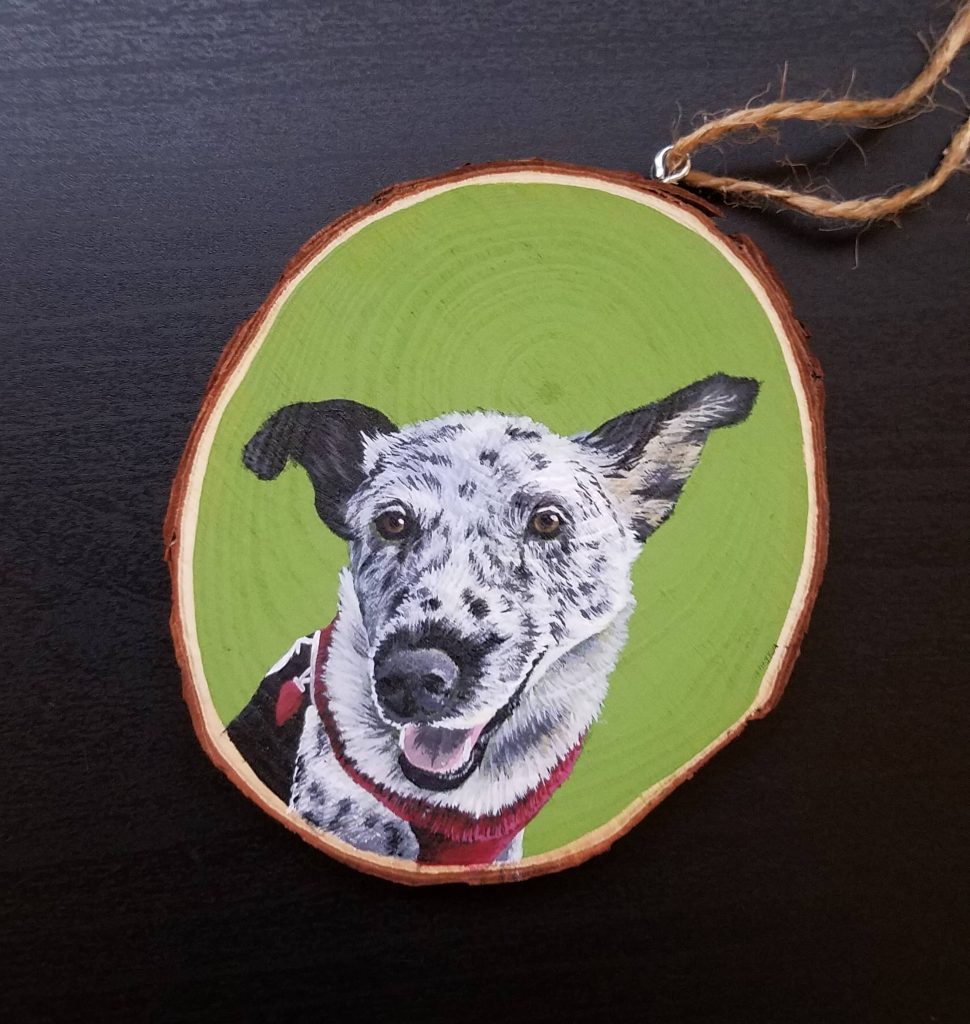 Naturally Vibrant Art Mister Portrait Ornament Size/Diameter: 3.5inches Medium: Acrylic on wood slice.